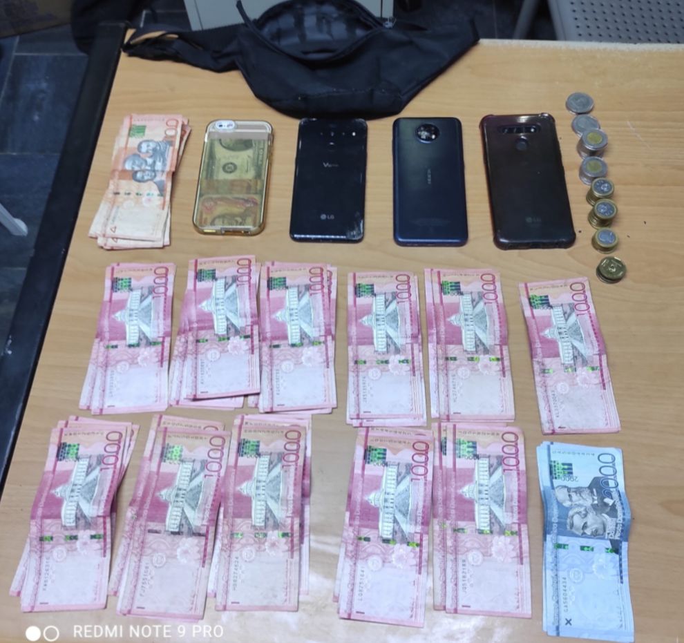 Al mismo se le ocupó la suma de 41,070 pesos en efectivo en papeletas y monedas de diferentes denominaciones, (04) teléfonos celulares de diferentes marcas y un bulto tipo maricona color negro, donde tenía guardada la evidencia.