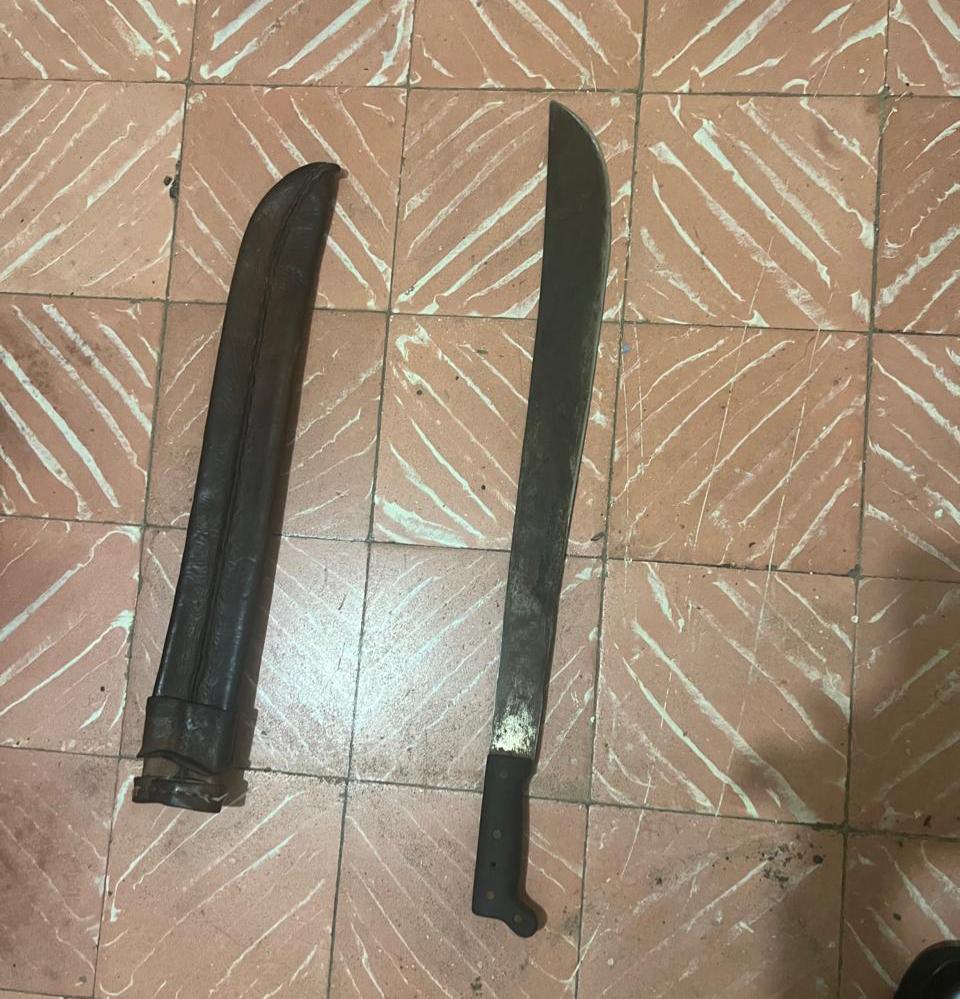 Luego de su apresamiento, el detenido tras ser interrogado, manifestó verbalmente haber cometido el hecho junto a la persona ya mencionada; Asimismo, le fue ocupada un arma blanca tipo machete de aproximadamente 16 pulgadas de largo.