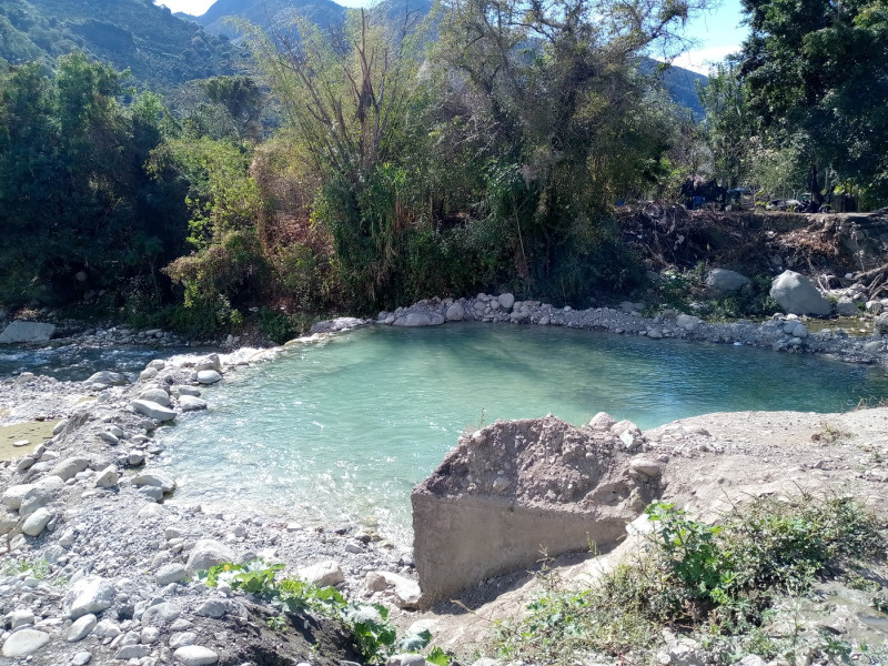 Con sus minúsculas cascadas que emergen de las piedras, la pequeña poza de aguas calientes es uno de los mayores atractivos naturales del municipio azuano que vive una especie de bonanza económica gracias al aguacate. ¿Tendrá que ver que este cultivo, que necesita de tanta agua, con la disminución del cauce del Guayabal?