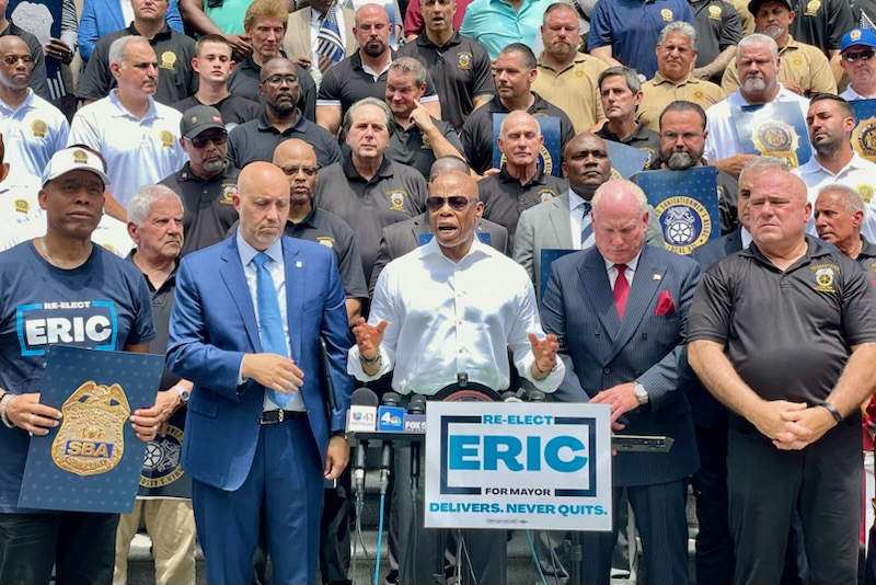 Los sindicatos que dieron su apoyo al mandatario municipal incluyen a los que representan a los capitanes, tenientes, detectives y sargentos del Departamento de Policía de la Ciudad de Nueva York. La Asociación Benéfica de Oficiales Correccionales, efectivos de tránsito y el sindicato de los oficiales de saneamiento también lo respaldaron.