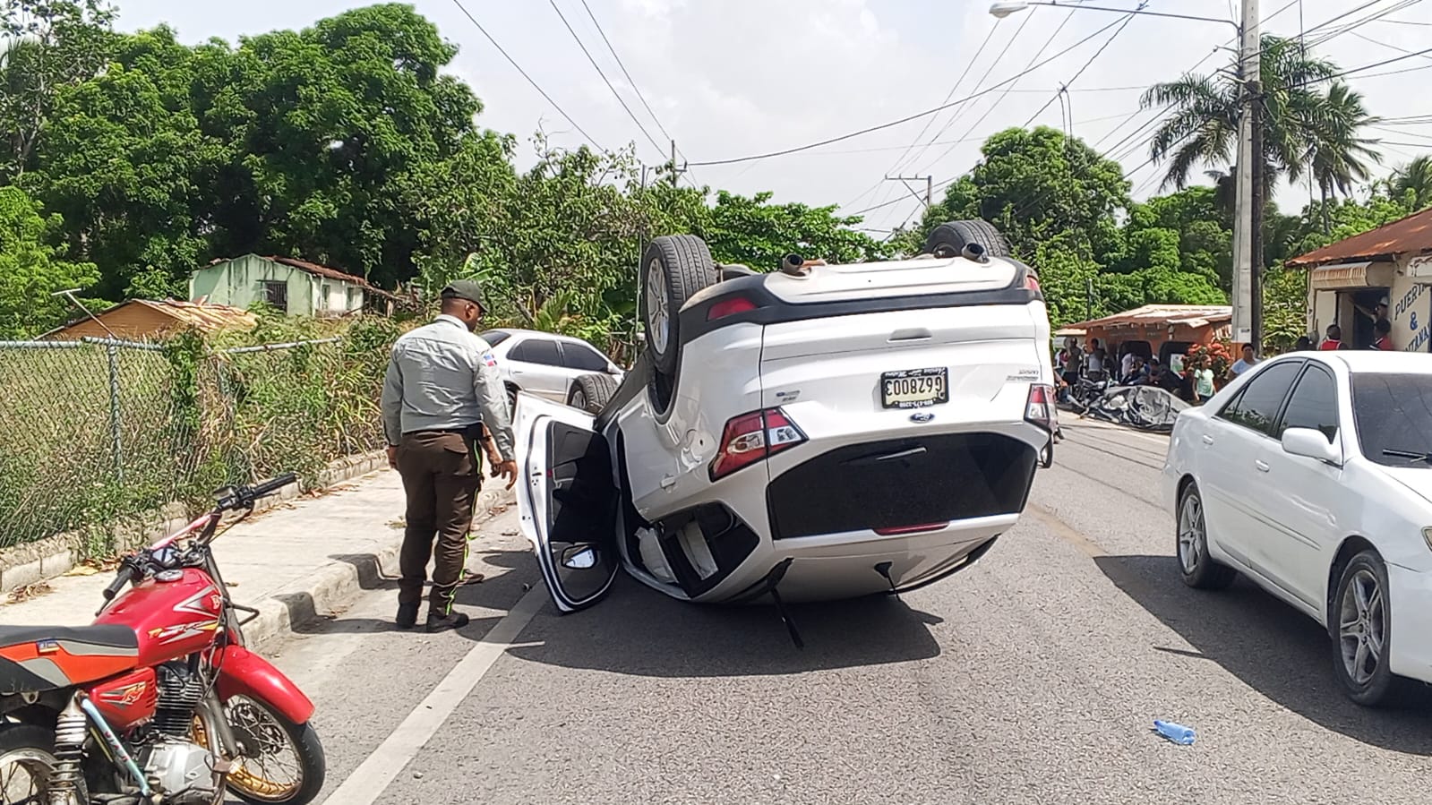 Cabarete.– Un accidente ocurrido la tarde de este miércoles en la carretera Islabón-Cabarete dejó como resultado un vehículo totalmente volcado, con las cuatro gomas hacia arriba. Afortunadamente, no hubo víctimas fatales.