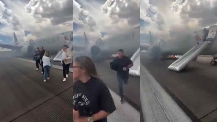 Videos publicados en redes sociales y reproducidos en los medios locales mostraron a los pasajeros evacuando frenéticamente el avión por un tobogán de emergencia, mientras el humo salía por la parte de atrás del aparato.