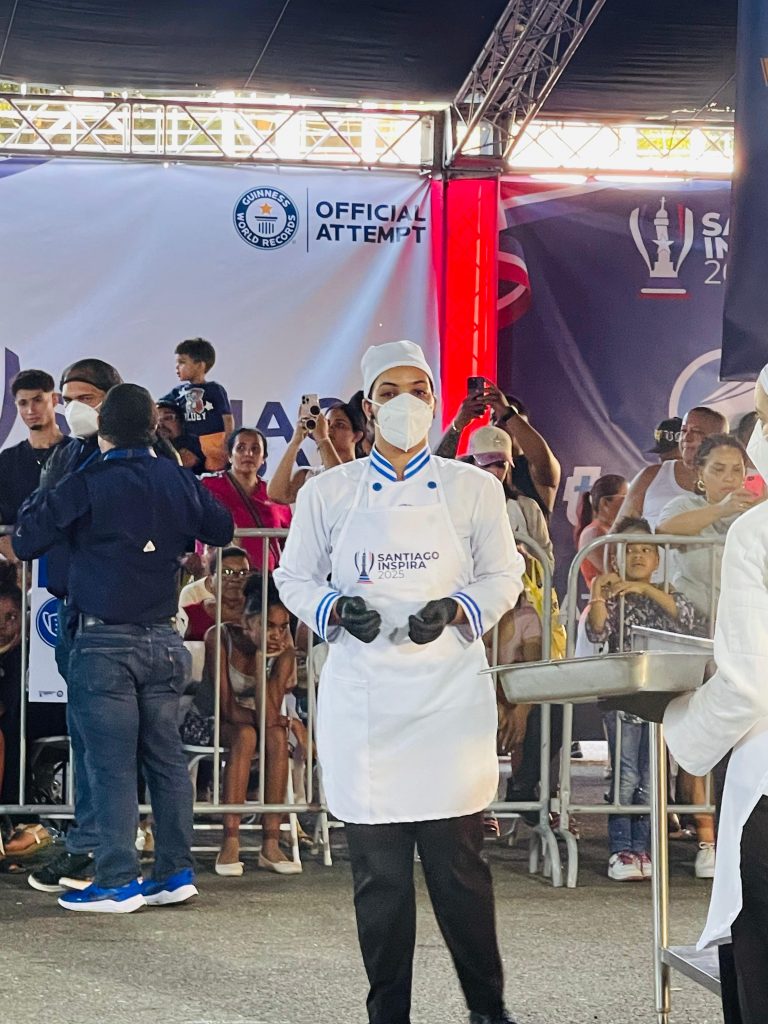Santiago.- La joven Arielis Bonilla Medina, oriunda de Sosúa, formó parte del equipo culinario que logró romper el Récord Guinness al preparar la bola de mofongo más grande del mundo, en un evento histórico celebrado en la ciudad de Santiago.
