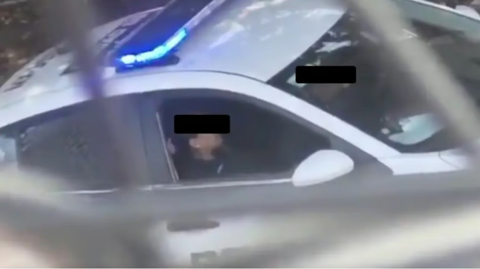 Las imágenes, que se difundieron rápidamente en redes sociales, revelan a ambos oficiales, aún en uniforme, compartiendo momentos íntimos mientras la patrulla circulaba por una vía pública. Sorprendentemente, la ventana del vehículo estaba abierta, permitiendo que la cámara capturara claramente el incidente.