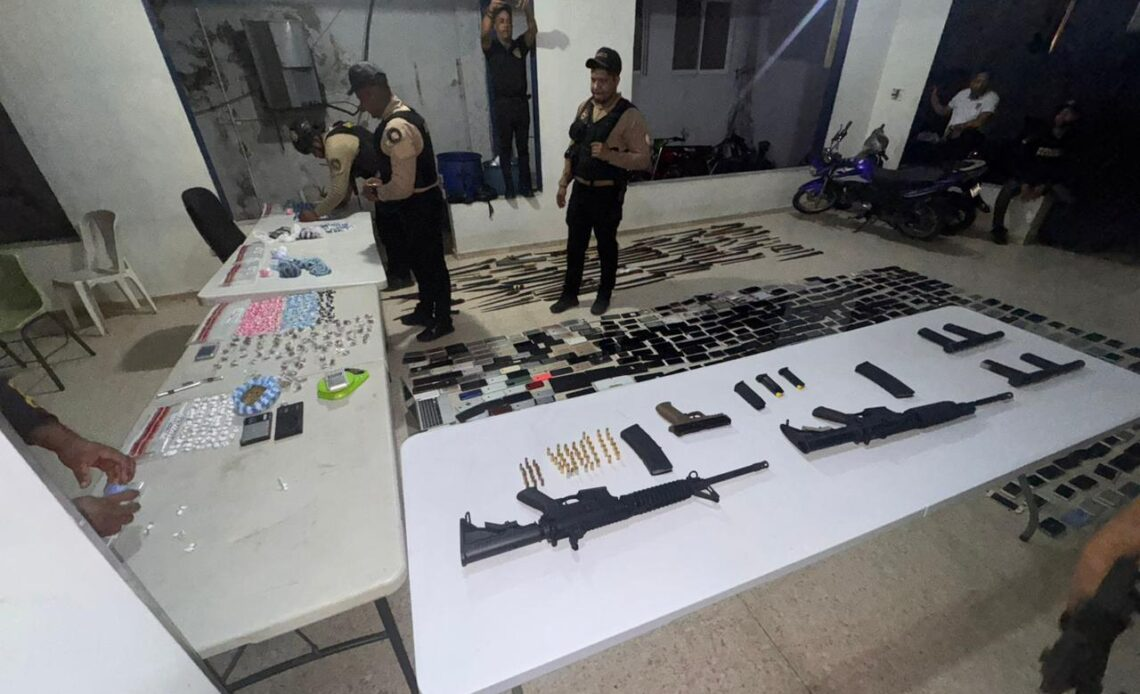 En la requisa fueron ocupados: dos fusiles calibre 5.56 mm, uno marca Ruger, serie No. 185130531, con su cargador; y otro marca Adams Arms, modelo AA-15, serie No. AA0008945, con su cargador; una pistola no letal de fogueo, marca Smith & Wesson, serie No. 21S11588; tres cargadores para pistola (uno marca Glock calibre .45 mm, otro para pistola 9 mm y el último para pistola .32 mm); y una caja de 50 cápsulas calibre 9 mm, marca Magtech. El presunto propietario no se encontraba presente al momento del allanamiento.