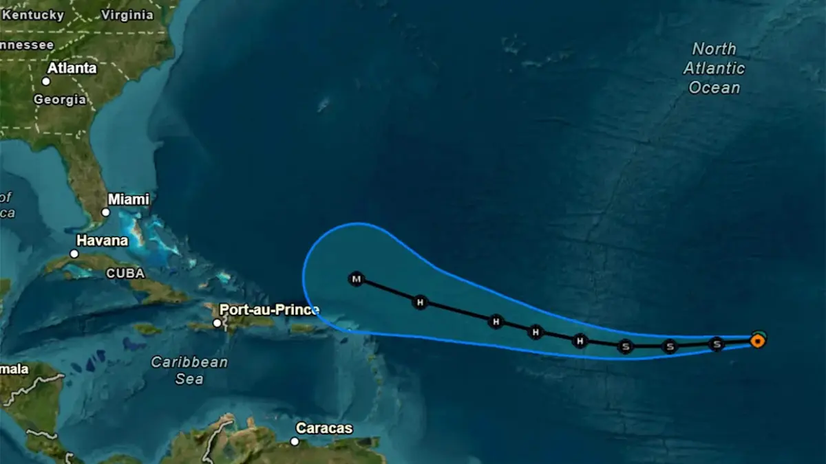 En esa trayectoria, su centro pasaría justo al norte de las islas de Sotavento Septentrionales, las Islas Vírgenes y Puerto Rico.