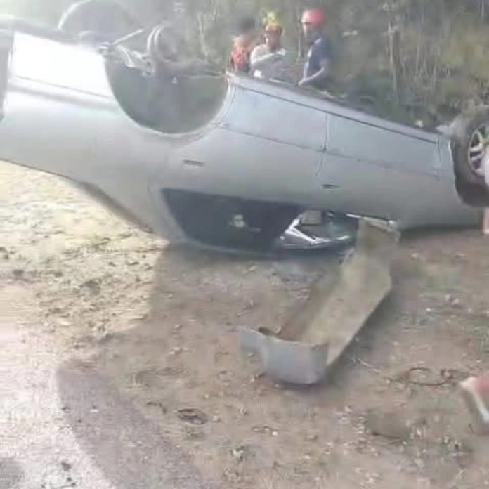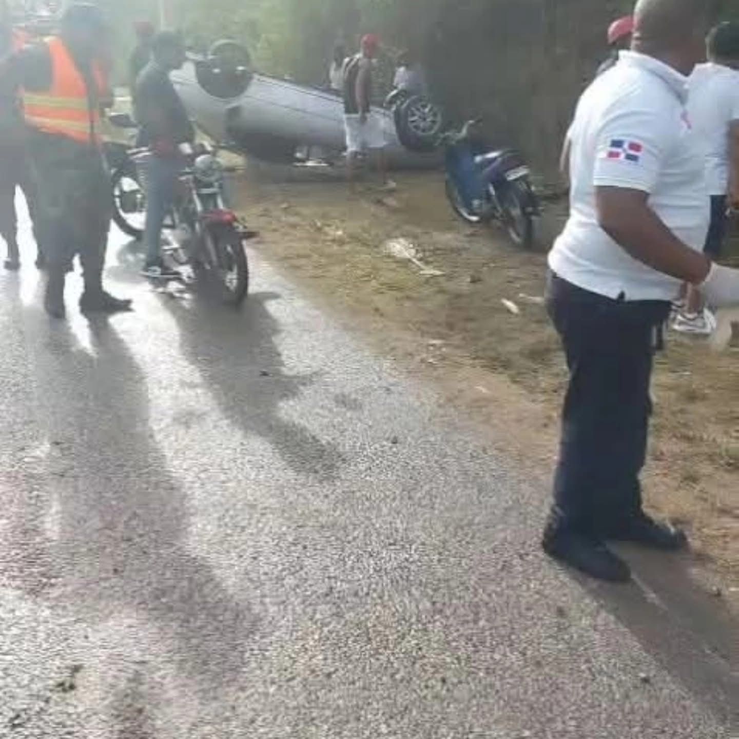 De acuerdo con datos preliminares, un vehículo Toyota Camry sufrió una falla mecánica, presuntamente por la ruptura del eje trasero, lo que provocó que perdiera el control y terminara con las cuatro ruedas hacia arriba. En el automóvil viajaban Rufino Alexander Marte del Rosario y Diomedes Marte López, quienes resultaron heridos.