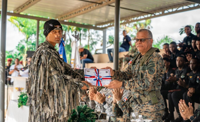 Durante el acto fueron entregadas distinciones a los participantes más sobresalientes y se impusieron las insignias correspondientes a cada curso, símbolo del cumplimiento exitoso de una formación rigurosa que eleva los estándares de preparación, profesionalismo y alistamiento de las Fuerzas Armadas de la República Dominicana.
