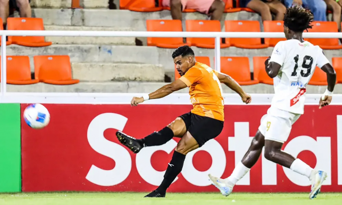 Mientras el onceno naranja perforó dos veces la portería contraria, Miguel Lloyd se encargó de repeler todas las ofensivas e intenciones de hacer daños de los visitantes. El marcador se abrió al minuto 20 con el primer gol de la Copa del Caribe Concacaf 2025, el cual fue anotado por De la Cruz. La jugada se produjo con un remate de derecha de De la Cruz, desde el centro del área, cruzando por debajo justo al palo izquierdo.