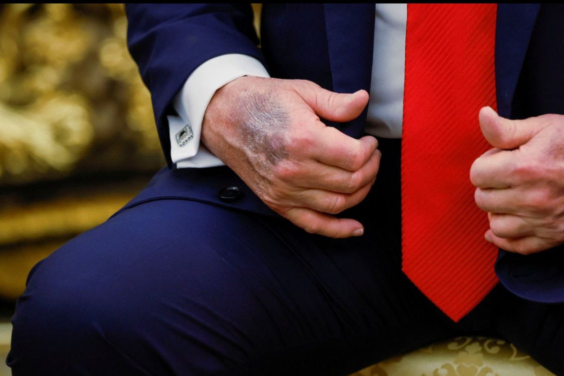 Washington, EE. UU. – El presidente Donald Trump volvió a generar preocupación sobre su estado de salud tras ser visto con un moretón oscuro en la mano mientras firmaba órdenes ejecutivas en el Despacho Oval.
