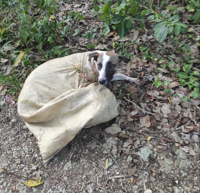 Sosúa, Puerto Plata.- Gran consternación ha causado en la comunidad de La Mulata, Sosúa, el hallazgo de un perro abandonado dentro de un saco, con una soga atada al cuello y múltiples heridas visibles.