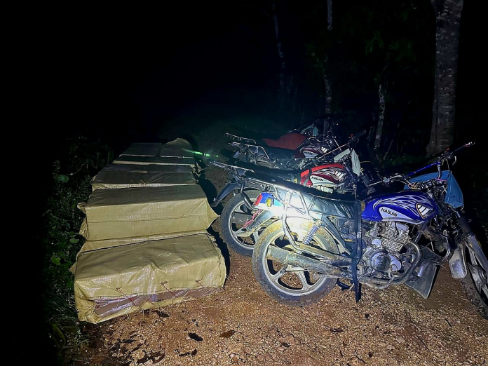 El personal militar detectó el desplazamiento de varias motocicletas próximo a la pirámide fronteriza 191. Tras una labor de vigilancia, interceptaron a cuatro motocicletas que transportaban 15 sacos tipo “mamilos”, cada uno con dos cajas de cigarrillos marca Capital, para un total de 30 cajas.