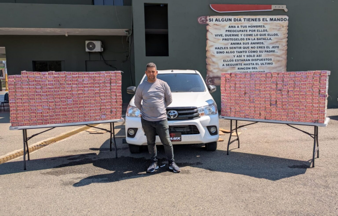 Minutos más tarde, la patrulla del ERD detuvo a Mariolis Julián Fortuna Peña, conductor de otra camioneta Toyota Hilux blanca, placa L525791, en cuyo interior fueron encontrados 549 paquetes de cigarrillos Capital, equivalentes a 109,800 unidades.