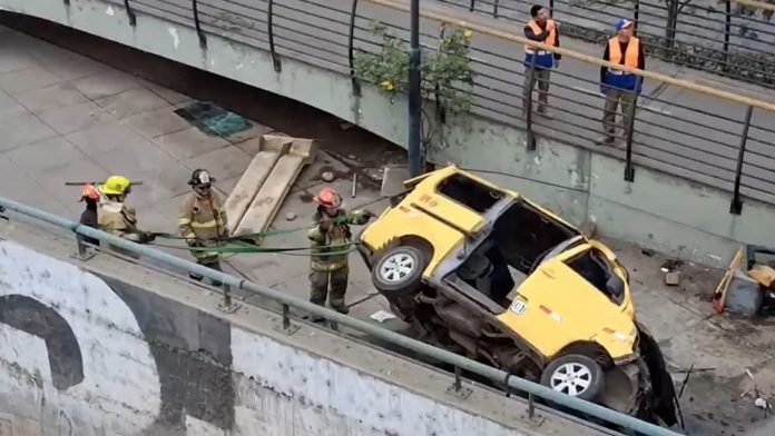 El vehículo rompió la baranda y cayó desde el puente Ricardo Palma, que une el centro de la capital peruana con el tradicional distrito del Rímac, al pasar sobre el río del mismo nombre y hacia una zona del parque en el que están los vestigios de la muralla que cercaba a Lima en tiempos coloniales.