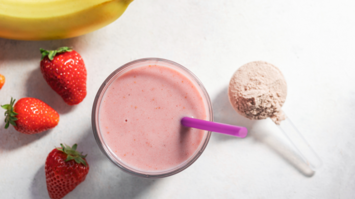 Batido de fresas y plátano con proteína en polvo