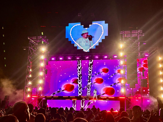 La noche seguía encendida y a las 10:51 llegó uno de los momentos más coreados con “PIENSA EN MÍ”, colaboración con Luar La L, en la que los versos transmitieron nostalgia, anhelo y un toque de incertidumbre amorosa que conectó de inmediato con la multitud.