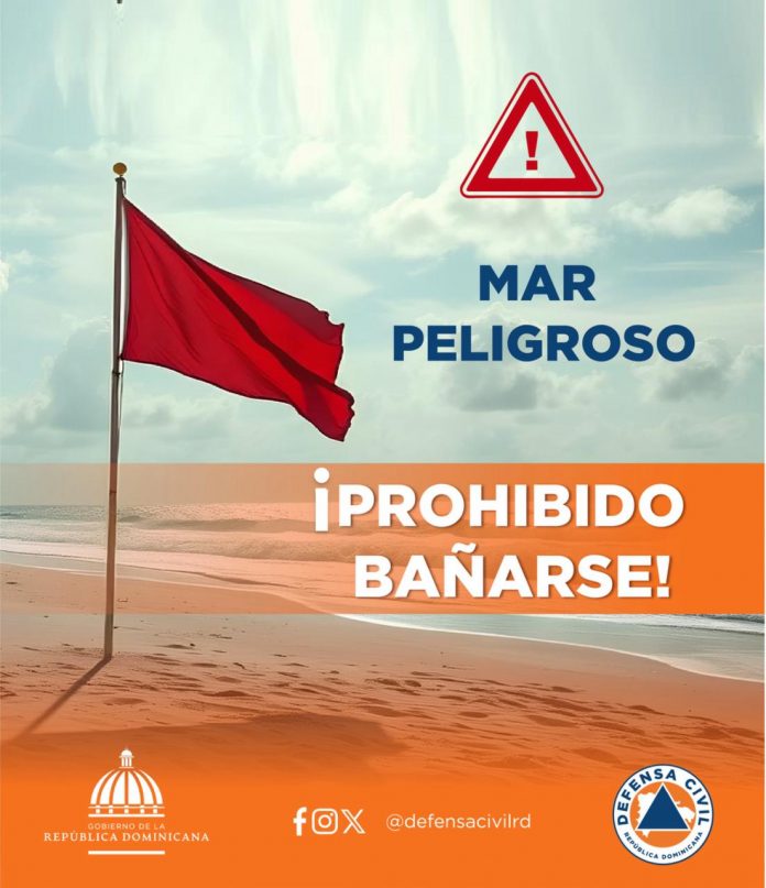 Debido a las condiciones adversas del mar y la seguridad de los bañistas, se coloca la Bandera Roja 🟥 en todas las playas del Litoral Costero de Puerto Plata.