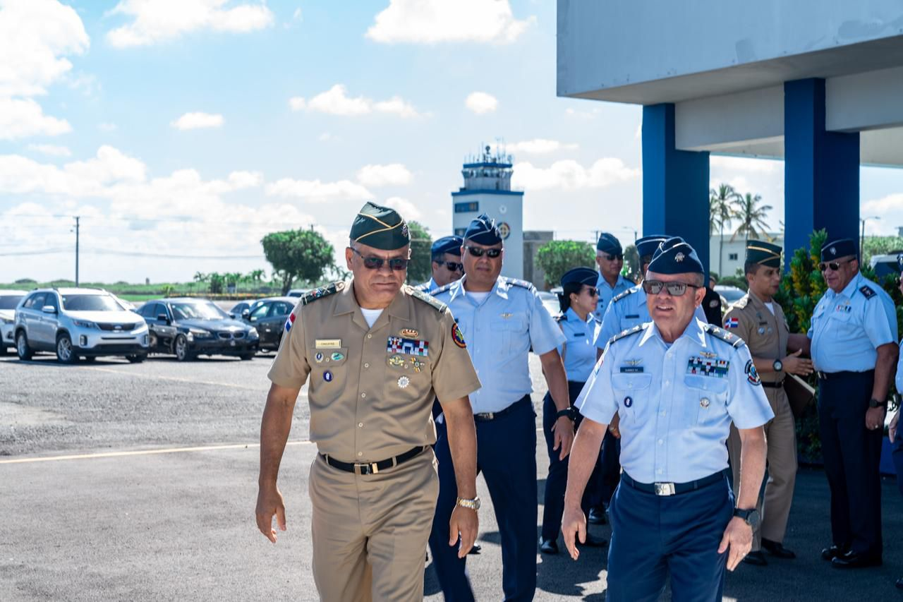 A su llegada a la Base Aérea de San Isidro resaltó la entrega, disciplina y compromiso de los hombres y mujeres del aire, subrayando la trascendencia de su labor en la defensa y seguridad del espacio aéreo nacional y, anunció el inicio de obras de remozamiento orientadas a mejorar las condiciones de trabajo del personal que presta servicio en la base aérea.