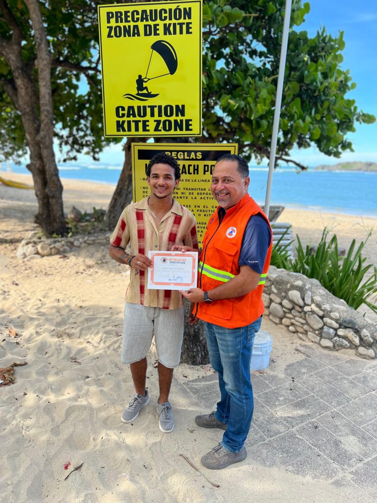 La Defensa Civil de Puerto Plata entregó reconocimientos a tres atletas de kitesurf por su destacada labor de rescate en la Puntilla del Malecón de Puerto Plata. Los reconocidos fueron: