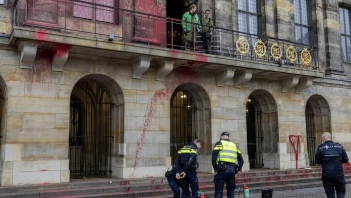 El Palacio Real de Ámsterdam, situado en la céntrica Plaza Dam, amaneció este martes cubierto con pintura roja y una frase contra Israel («Fuck Israel») pintada en su fachada, en una acción hecha por el grupo contra las acciones contra Palestina “Palestine Action NL” y que ha sido calificada por la alcaldesa Femke Halsema como “escandalosa e inaceptable”.