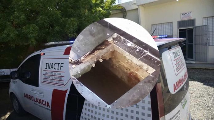 El cadáver fue trasladado al Instituto Nacional de Ciencias Forenses (Inacif), en la parte trasera de una camioneta del ministerio público, sin el protocolo que se estila en estos casos.