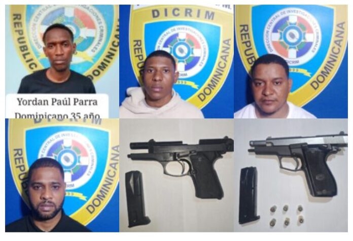 Los detenidos son Juan Francisco Rincón Mena (a) Cesarín, de 30 años; Zudy Yoherlyn de los Santos Soriano (a) Yoherlyn, de 36; Yordan Paul Parra, de 35; y Jeremi Yulgensi Pimentel Ramírez (a) Jeremy, de 21, todos residentes en el municipio de Quisqueya, quienes eran activamente buscados mediante orden de arresto No. 2025-AJ0065008.