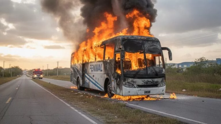 Un autobús que transportaba empleados de la empresa Fenwal se incendió la mañana de este viernes, poco después de que los trabajadores descendieran en las cercanías del Parque Itabo, donde se ubican varias zonas francas e industrias del municipio.