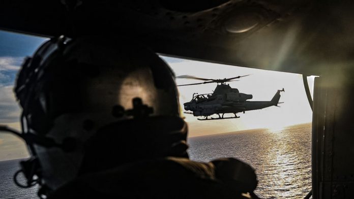 El Comando Sur de Estados Unidos informó que dos helicópteros militares estadounidenses, un AH-1Z Cobra y un UH-1Y Venom, realizaron maniobras de fuego real sobre el Mar Caribe, demostrando su destreza, coordinación y capacidad táctica en combate.