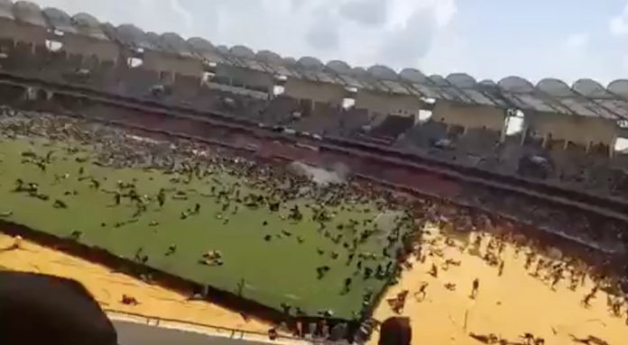 La Policía respondió disparando al aire y lanzando gases lacrimógenos contra las miles de personas congregadas en el estadio, el más grande de Kenia; lo que desató el pánico y provocó una estampida que dejó el recinto prácticamente vacío.