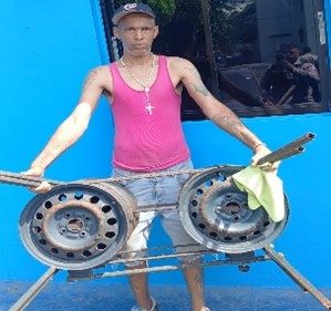 PUERTO PLATA.– Una patrulla de la Policía Nacional arrestó a un individuo cuando caminaba por una calle de esta ciudad atlántica cargando al hombro un anafe dúplex que sustrajo de una propiedad.