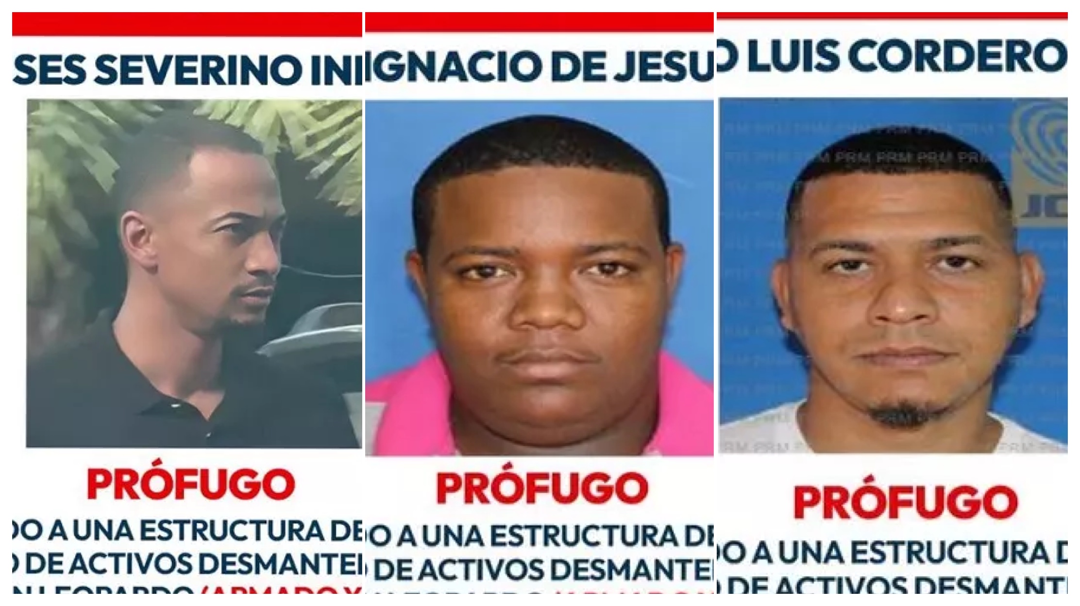 Los prófugos fueron identificados como Pedro Luis Cordero Espinal, Moisés Severino Inirio y José Ignacio de Jesús Mota, quienes son requeridos por las autoridades judiciales para responder a las acusaciones que pesan en su contra.
