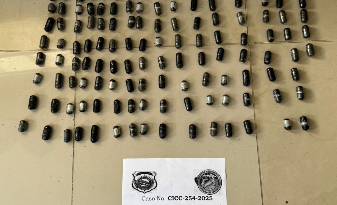 “El extranjero, tras permanecer durante varios días en el centro, bajo el control de médicos especialistas, evacuó las bolsitas, con un peso total de un kilo y 60 gramos de cocaína, según el análisis del Instituto Nacional de Ciencias Forenses (INACIF)”.