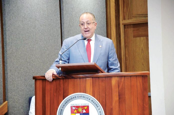 Las palabras de bienvenida estuvieron a cargo del rector de la PUCMM, Reverendo Padre Secilio Espinal, quien destacó la importancia del diálogo entre el Gobierno, la academia y los sectores productivos para la comprensión del desarrollo económico nacional. El encuentro contó con la presencia de la gobernadora Rosa Santos, el alcalde Ulises Rodríguez, el director general de CORAASAN, Andrés Cueto, líderes empresariales, así como empresarios, funcionarios públicos y estudiantes de la casa de estudios.