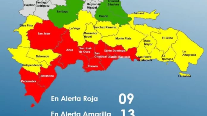 Mientras que en alerta verde permanecen: María Trinidad Sánchez, Santiago y Duarte.