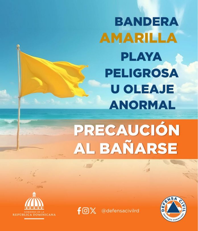 Puerto Plata.– El Comité de Prevención, Mitigación y Respuesta (PMR) de Puerto Plata informó este domingo 26 de octubre de 2025, a las 9:30 de la mañana, que debido a la mejora en las condiciones del oleaje y las corrientes marinas, se dispone el cambio de bandera roja 🟥 a bandera amarilla 🟨 en las playas del litoral costero del Atlántico de esta provincia.