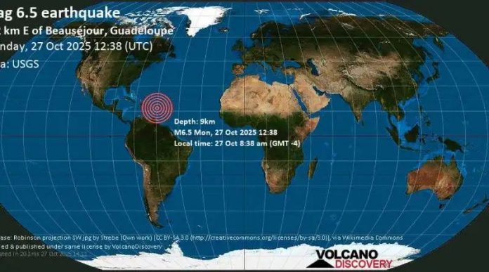 Caribe. – Un potente sismo de magnitud 6.5 sacudió este lunes la región del Caribe oriental, con epicentro a unos 160 kilómetros al este de Guadalupe, según reportes del Servicio Geológico de Estados Unidos (USGS).
