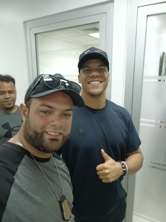 Asimismo, el mejor pagado del béisbol, fue observado compartiendo con los colaboradores de Aduanas en Puerto Plata, quienes jubilosos se tomaban fotografías con él, y de manera sonriente accedió a las peticiones de sus fanáticos y hasta le autografió pelotas.