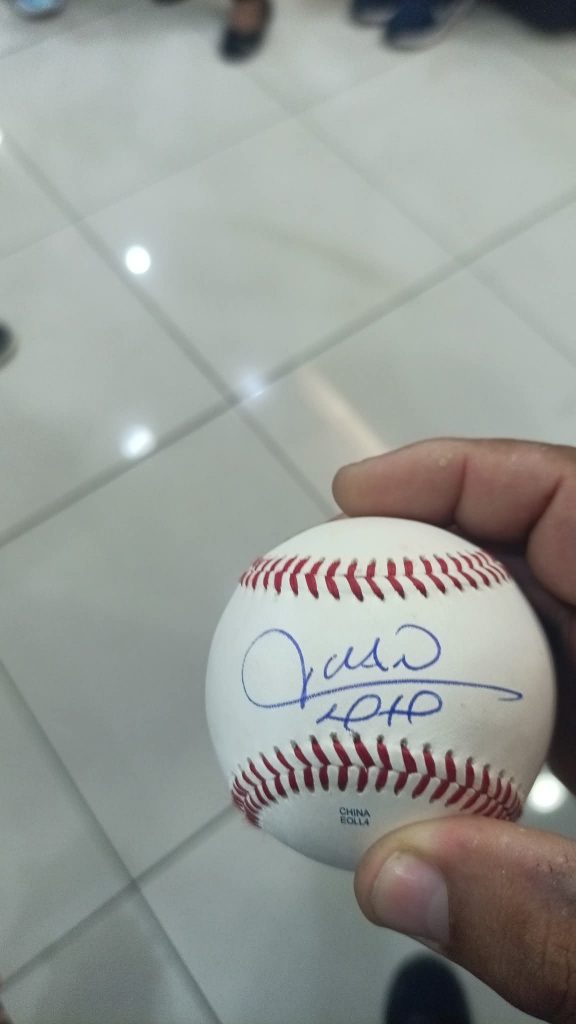 Cuando salía de las referidas oficinas públicas, un ciudadano visiblemente emocionado le pidió al pelotero de forma jocosa que conecte 50 jonrones en la venidera campaña 2026 de las Grandes Ligas, lo cual fue motivo de risas entre los presentes.