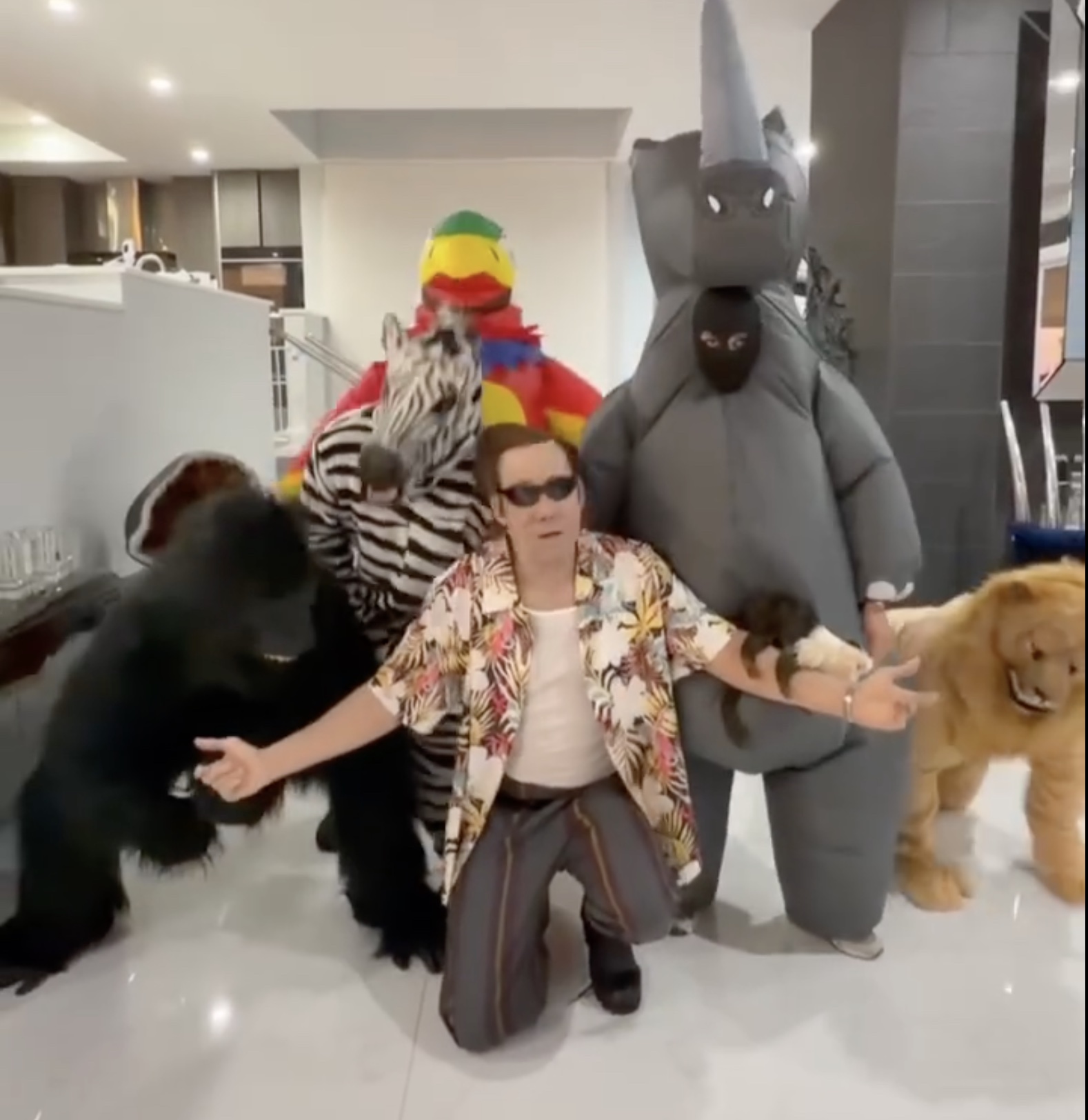 A través de su cuenta oficial de Instagram, el artista compartió imágenes y videos donde aparece con el característico atuendo hawaiano, pantalones rayados y el peinado excéntrico del personaje, en una recreación que rápidamente se volvió viral.