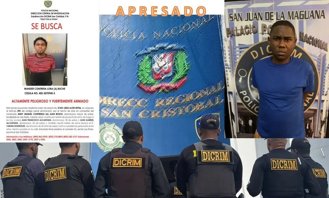 SAN CRISTÓBAL.- La Dirección Regional San Cristóbal de la Policía Nacional, bajo la dirección del Coronel Ramón O. Hernández Peralta, informó que agentes de la Subdirección Regional de Investigación (DICRIM), junto a miembros de la Unidad Sensitiva, lograron el arresto del nombrado Wander Contrera Lora, alias «Buche», quien era activamente buscado mediante orden judicial No. 01541-2025-AJOR-02936 por doble homicidio.