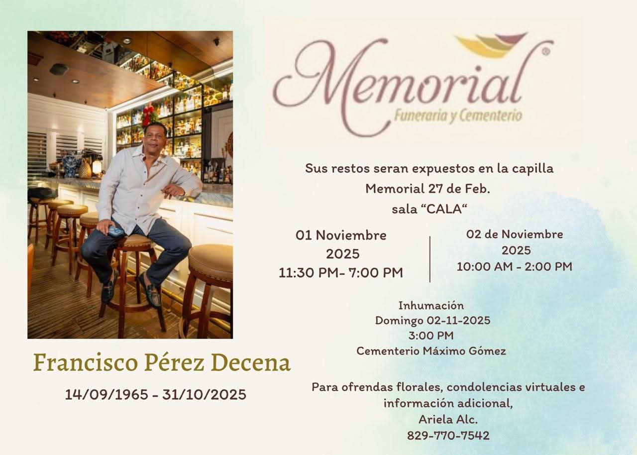 Sosúa, Puerto Plata. – Lamentablemente falleció en la ciudad de Santo Domingo el reconocido empresario Francisco Pérez Decena, cariñosamente conocido como “Charly”, una figura muy apreciada en el ámbito empresarial y social de Sosúa.