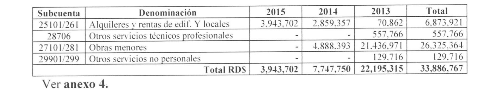 Las irregularidades se detectaron en pagos efectuados mediante cheques y libramientos para cubrir alquileres, obras menores, mantenimiento y servicios técnicos profesionales, sin la debida documentación de respaldo exigida por las normas contables y fiscales vigentes.