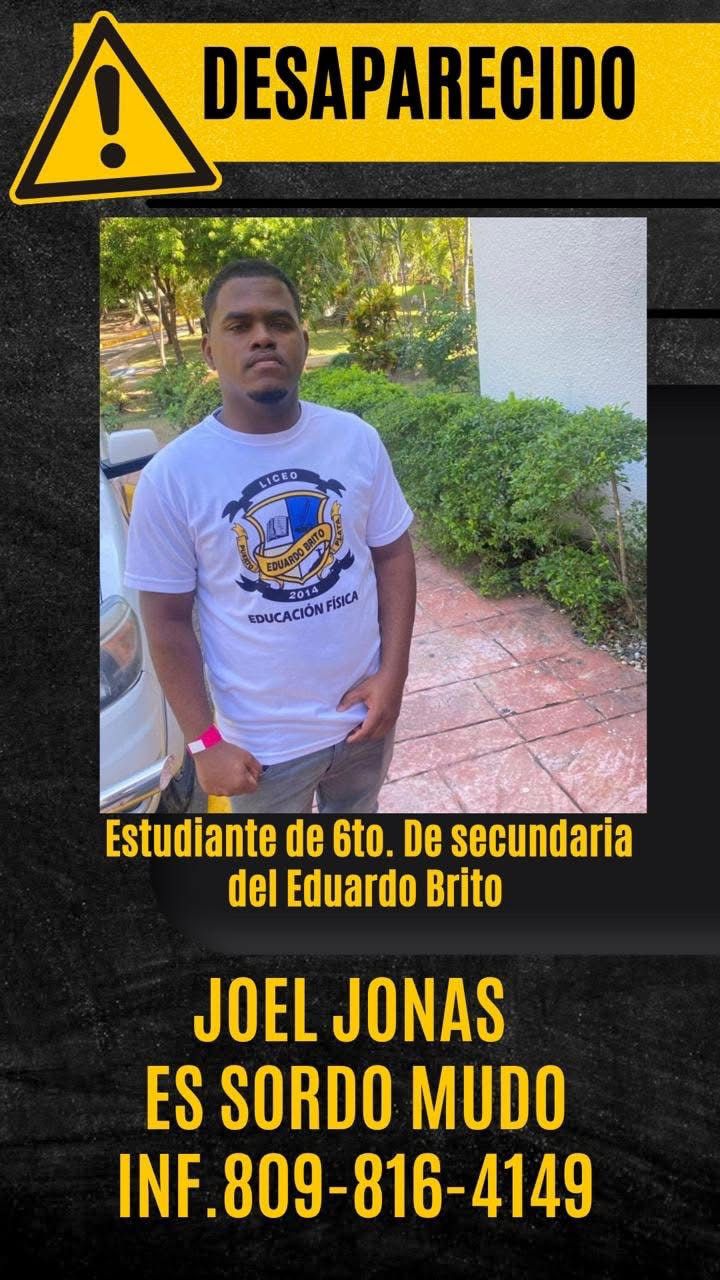Puerto Plata, R. D.- El director del Liceo Eduardo Brito de Puerto Plata, Lic. Juan Carlos Almonte, informó a InfoENN El Nuevo Norte que el estudiante Joel Jonas, quien es sordo-mudo, se encuentra desaparecido desde las 5:00 de la tarde del domingo 9 de noviembre de 2025.