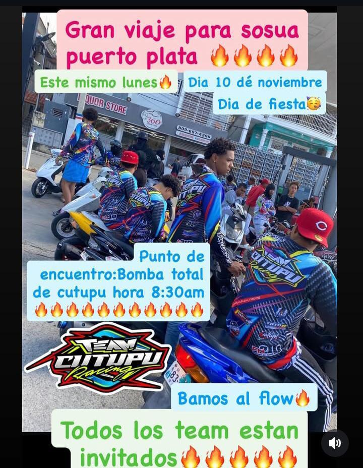 Sosúa, Puerto Plata.- Moradores y comerciantes de Sosúa expresan su preocupación ante la posible llegada de una gira en motocicleta compuesta por más de 200 motoristas, que según se promociona en redes sociales, partiría desde Cutupú, La Vega, con destino a la zona de Puerto Plata.