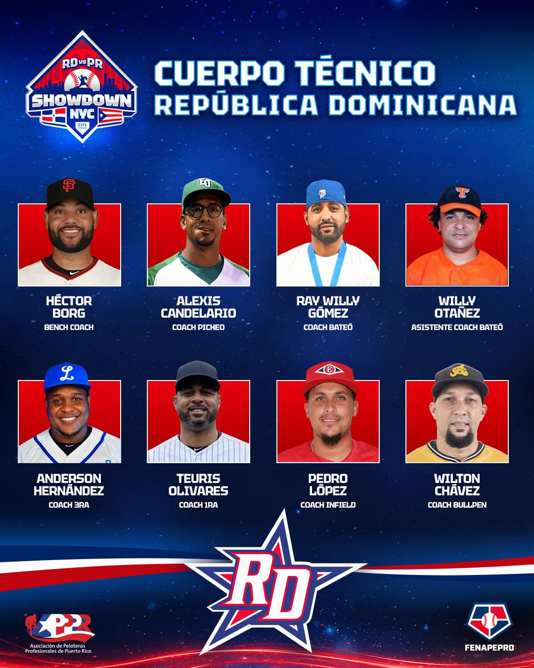 Santo Domingo.- La Federación Nacional de Peloteros Profesionales de la República Dominicana (FENAPEPRO) presentó oficialmente el roster del equipo que representará al país en el esperado evento “Showdown: RD vs PR”, que se celebrará el sábado 15 de noviembre en el Citi Field, hogar de los Mets de Nueva York.