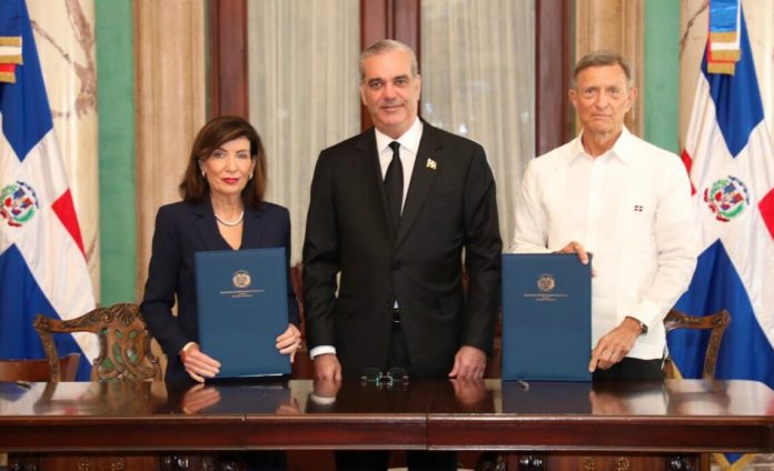 El presidente de la República Dominicana, Luis Abinader, y la gobernadora del estado de Nueva York, Kathy Hochul, anunciaron este martes un acuerdo histórico para reafirmar y fortalecer los lazos culturales, sociales y económicos entre ambos gobiernos, mediante la firma de una Declaración de Intención que establece nuevas áreas de cooperación en preparación ante desastres, innovación agrícola y desarrollo económico.