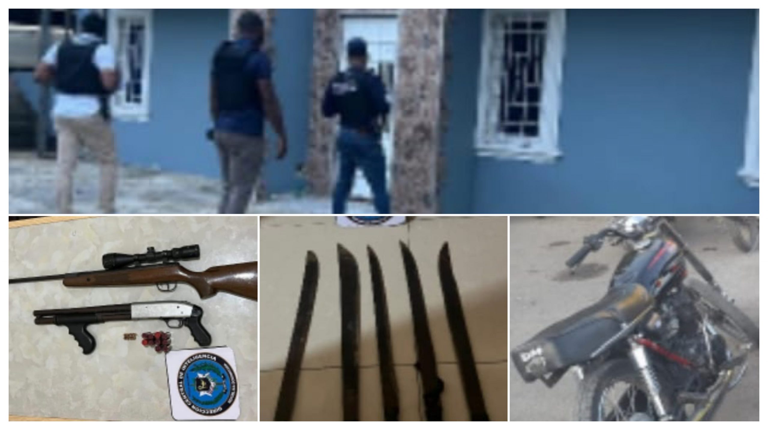 Durante las intervenciones las autoridades ocuparon armas de fuego, armas blancas y motocicletas sin documentación, todo lo cual quedó bajo custodia policial y a disposición de los procedimientos legales correspondientes.