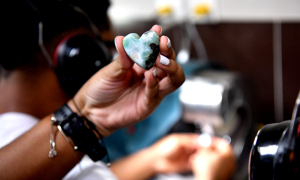 Al menos 50% del larimar extraído permanece en República Dominicana para la producción de joyería y artesanías, un sector que ha experimentado un crecimiento importante gracias a la demanda turística, con la llegadas de cruceros en los últimos años en la zona sur del país.