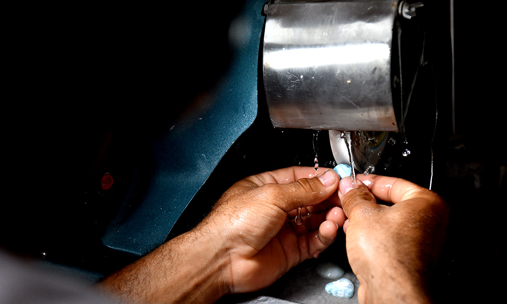 Las vetas de larimar afloran en el paraje Chupaderos, en la sección Los Checheses, a 10 kilómetros al suroeste de la ciudad de Barahona. Es aquí donde, cada día, más de 778 mineros residentes en las comunidades de la zona como Los Arroyos, Las Filipinas, Los Checheses, Los Patos, se adentran en las entrañas de la montaña para extraer la preciada piedra azul, cuyas tonalidades —desde el blanco y el azul claro hasta el azul profundo o verde azulado— cautivan a artesanos, comerciantes, turistas y visitantes. Algunas piezas incluso muestran vetas rojizas, producto de restos de hierro atrapados en el interior de la roca durante su formación.