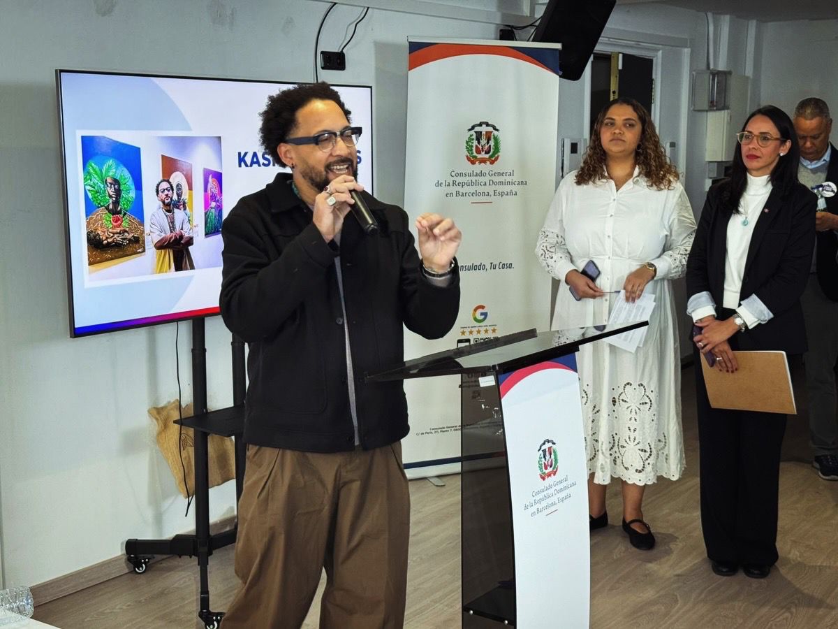 Barcelona, España. – El artista dominicano Kashmir Jones participó como invitado especial en la conferencia “Color, sabor y calor en cada esquina”, celebrada en el Consulado de la República Dominicana en Barcelona, donde presentó su tríptico “Raíz y Resistencia”, una obra que profundiza en la memoria ancestral, la identidad afrocaribeña y la fuerza comunitaria.